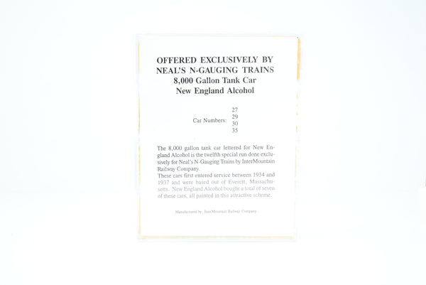 Intermountain Railway Company N Gauge New England Alcohol 8,000 Tank Car Pack