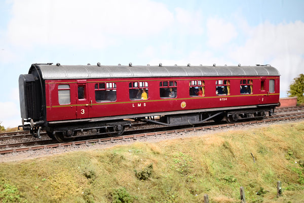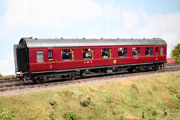 Kit Built 7mm O Gauge LMS Maroon 57ft Stanier Composite Vestibule Coach No.9754