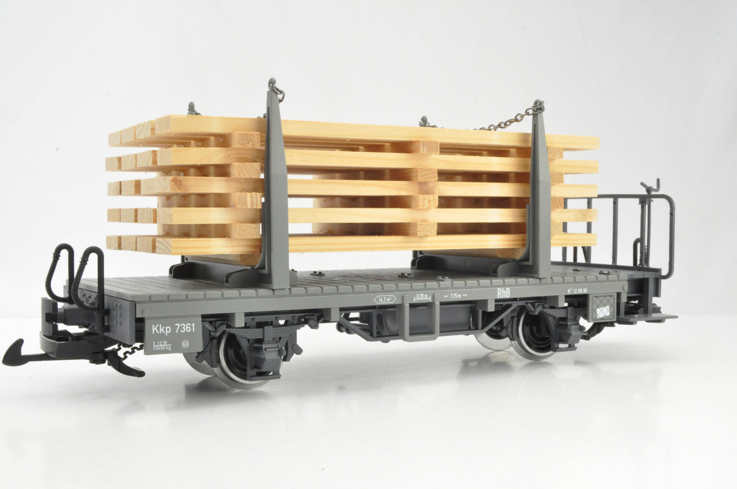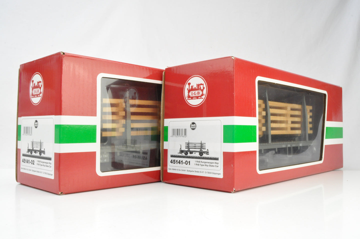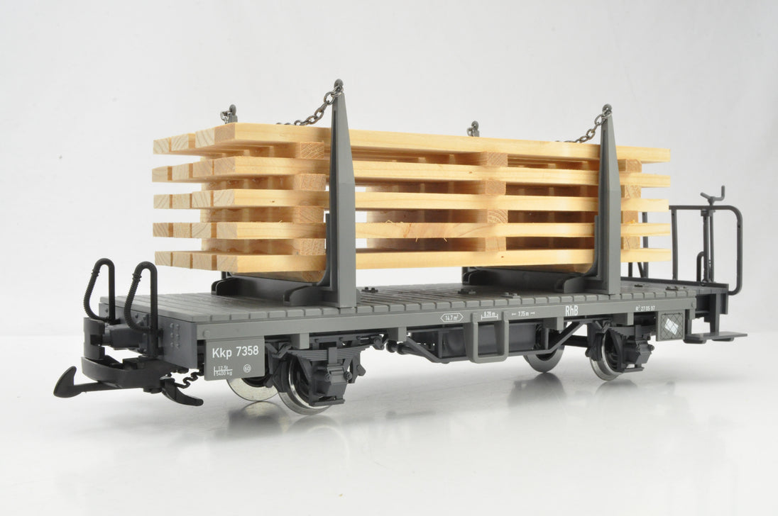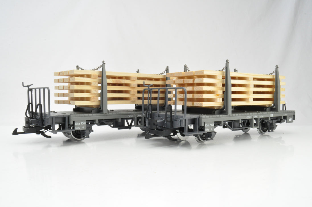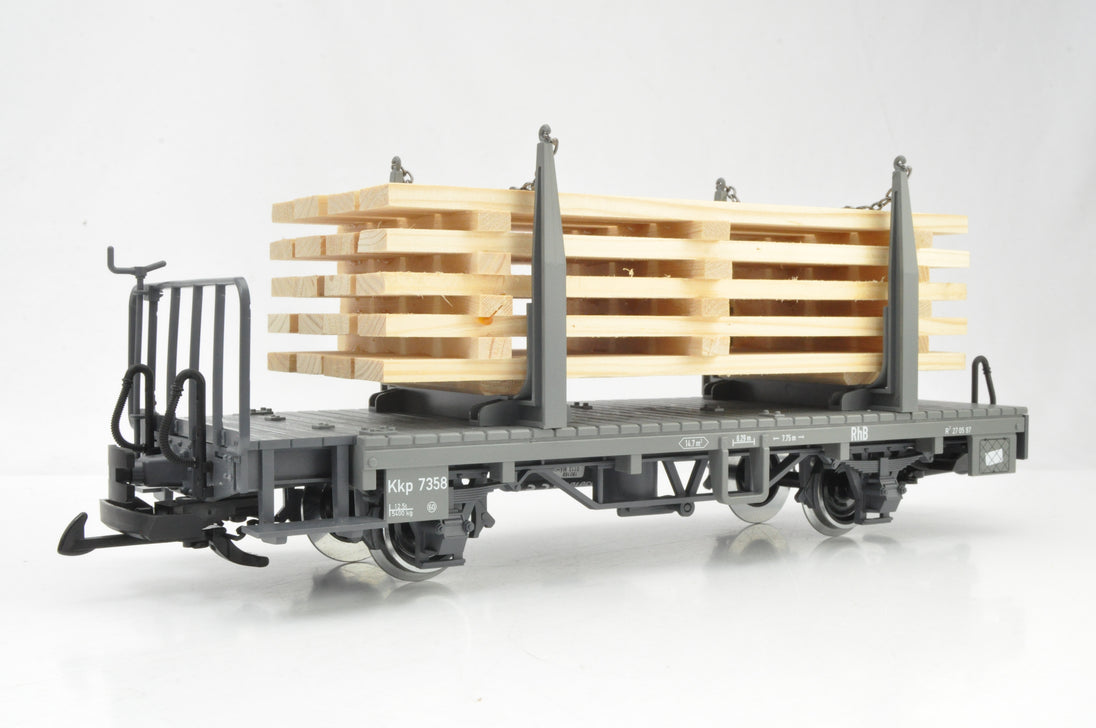 LGB G Gauge 45141-01/02 Pair of RhB Two-axle Stake Cars with wood load