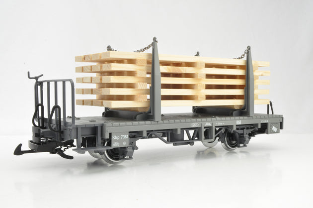 LGB G Gauge 45141-01/02 Pair of RhB Two-axle Stake Cars with wood load