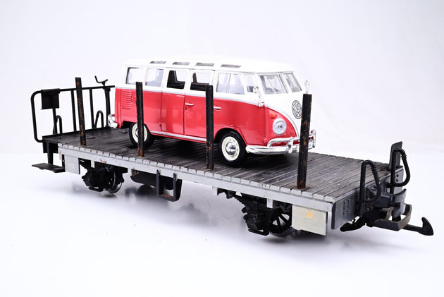LGB G Gauge 4 Wheel Flat Stake Wagon with VW Camper Van Load