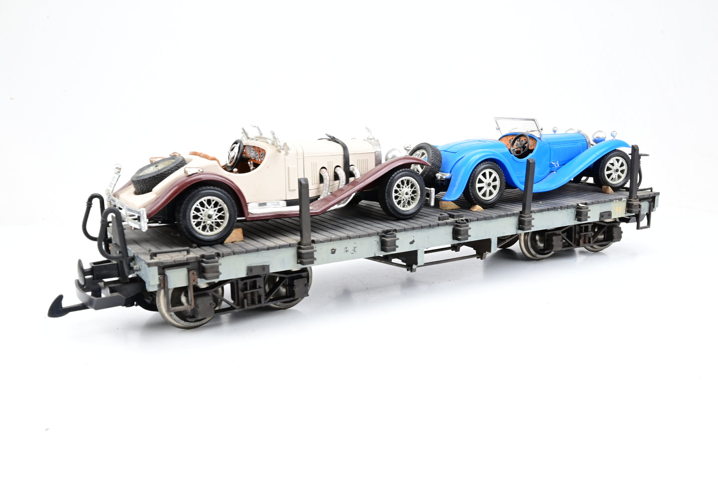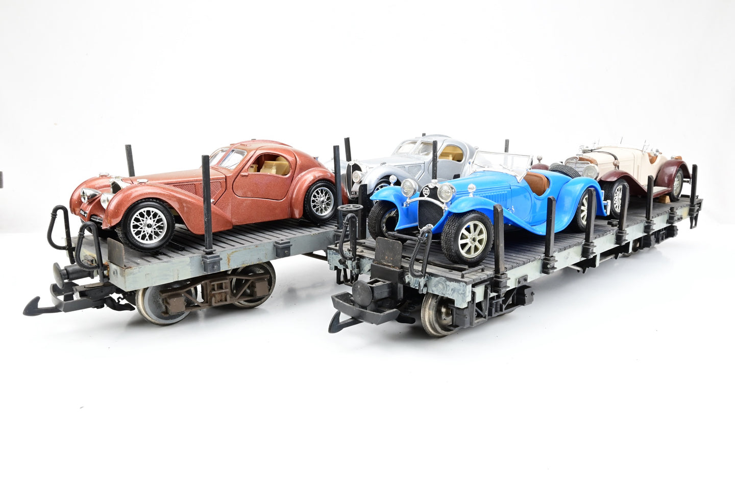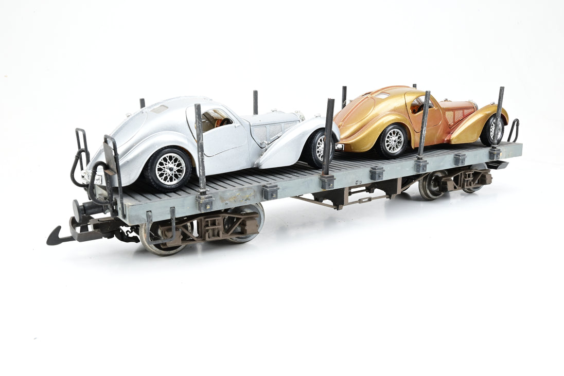 Bachmann G Gauge Pair of Grey Flat Wagons with Car Loads