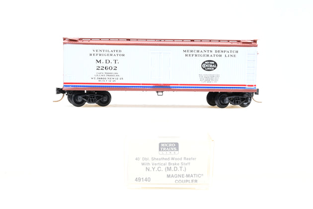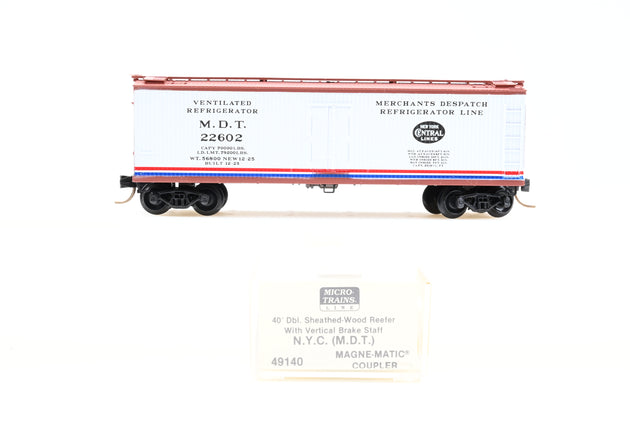 Micro Trains N Gauge 49140 NYC MDT 40' Double Sheathed Wood Reefer w/ Vertical Brake Staff #22602