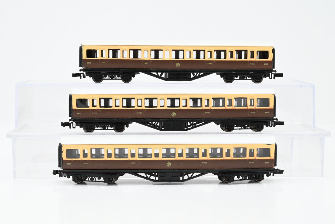 Graham Farish N Gauge Rake of 3 GWR Coaches, Shirtbutton - Unboxed