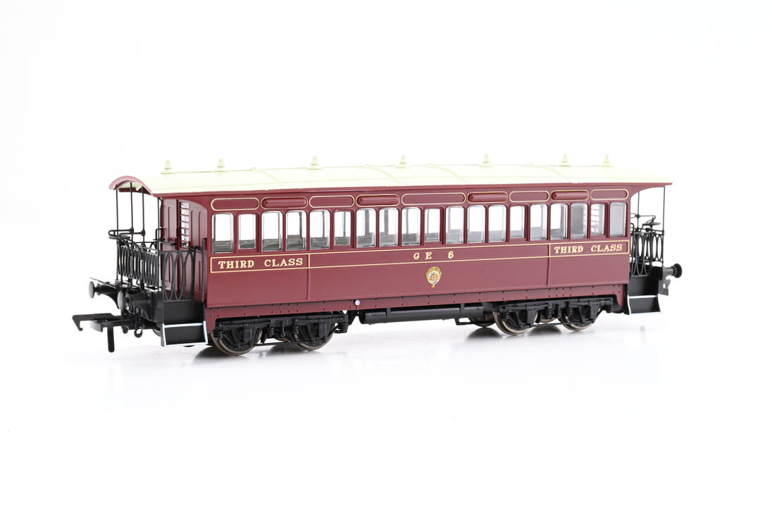- All 3rd Class tramcar No.8 in GER coach brown