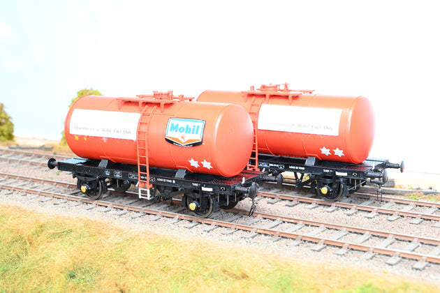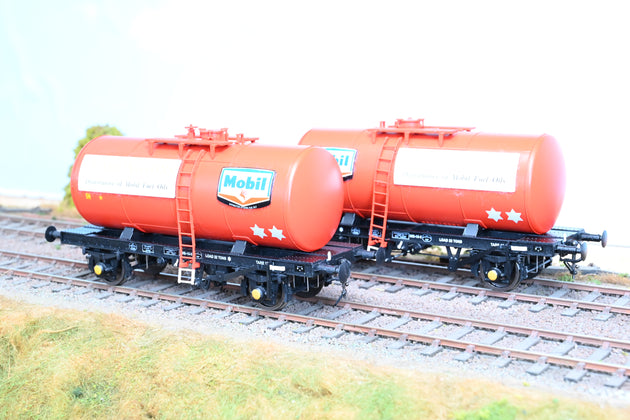 Heljan 7mm O Gauge Pair of Mobil Charringtons Red 4-Wheel Class B Tank Wagons