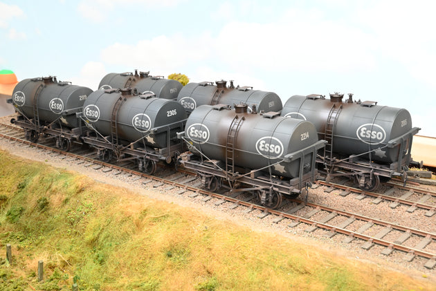 Dapol 7mm O Gauge Rake of 6 Esso Black 4-Wheel Tank Wagons - Boxed