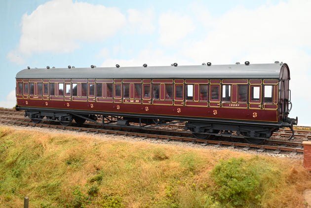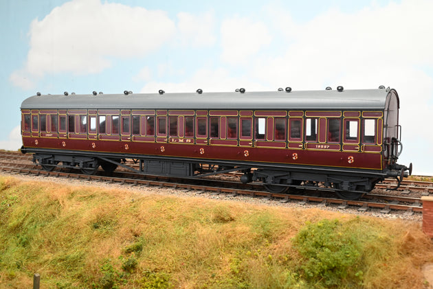 Kit Built 7mm O Gauge LMS Maroon 9-Compartment Third Class Suburban Coach No.18257