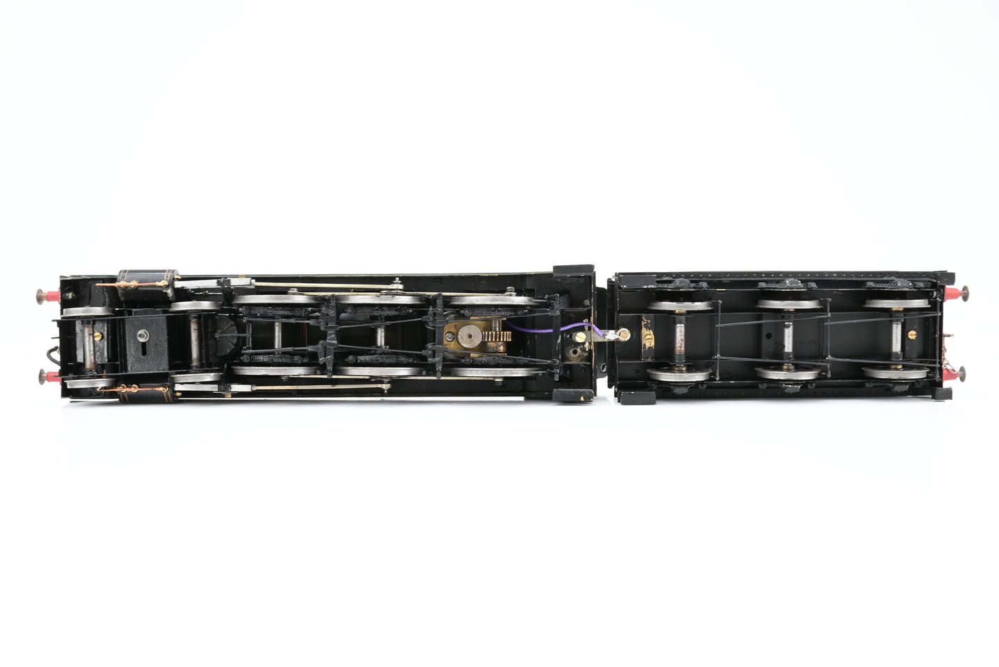 • Condition: A very nicely built and decorated model, that is in good overall condition but shows some signs of age and wear - some small paint chips, the upper part of the tender walls are slightly warped and need to the bent back into position, their have been some repairs to the handrails along the boiler and some spots of glue residue are visible, and the model is a little grubby/dusty in places.  Brass construction.