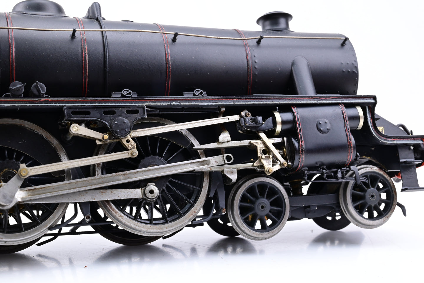 - Operational Status: Non-working. Missing gudgeon pin on right hand little end/crosshead, bent handrails on boiler. Can motor and single stage gearbox. Runs but sold as non-runner