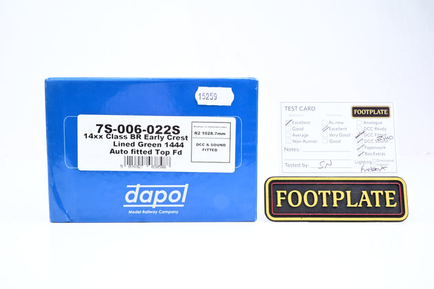 Dapol O Gauge 7S-006-022S 14xx Class BR Early Crest Lined Green A/fitted Top Feed No.1444 - DCC Sound, Boxed