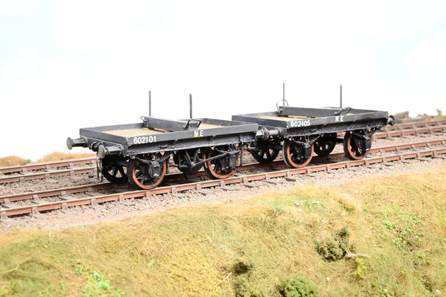 Kit Built 7mm O Gauge Pair of North Eastern Short Wheelbase Bolster Wagons No.609357 & 609371