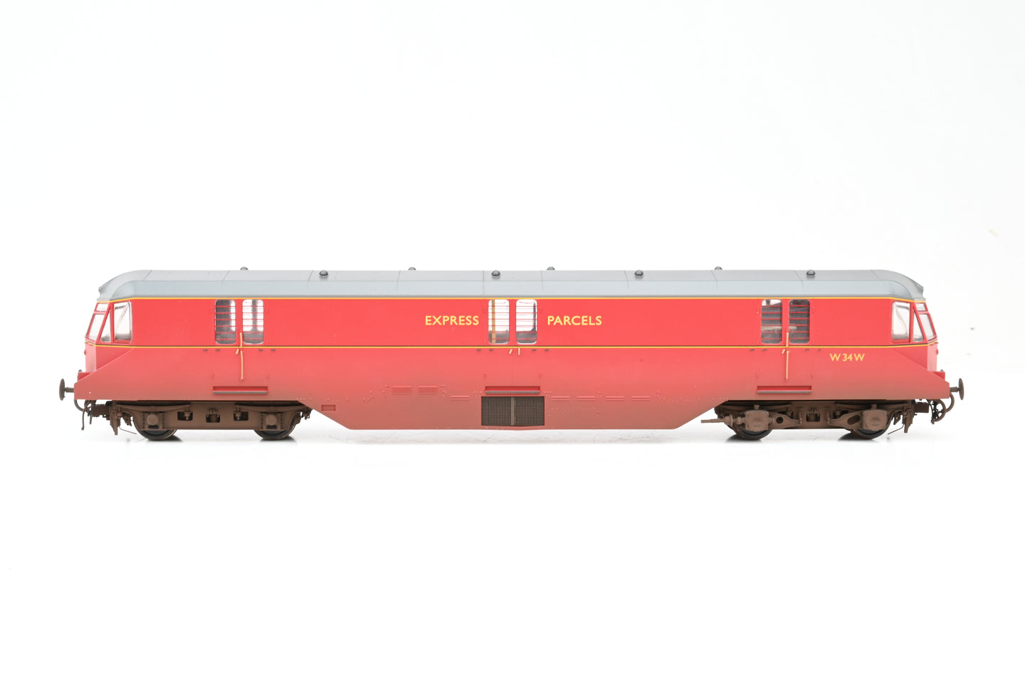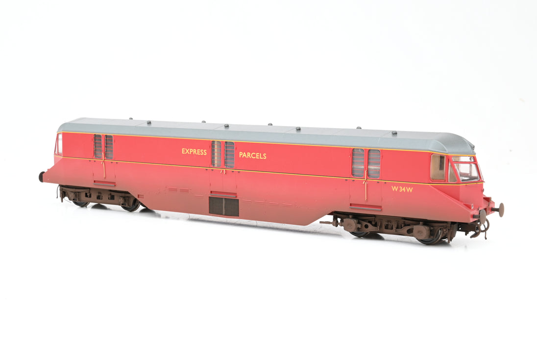 Heljan OO Gauge 9432 BR 'Express Parcels' Railcar Crimson No. 34 (grey roof) - WEATHERED