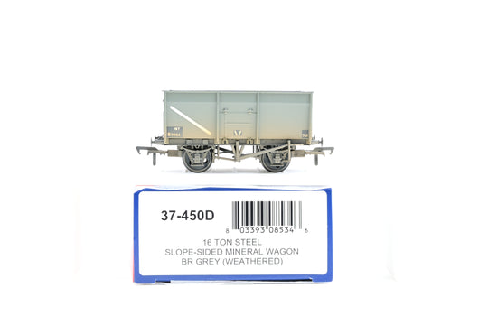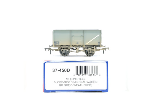Bachmann OO Gauge 37-450D 16 Ton Steel Slope Sided Mineral Wagon BR Grey - Weathered