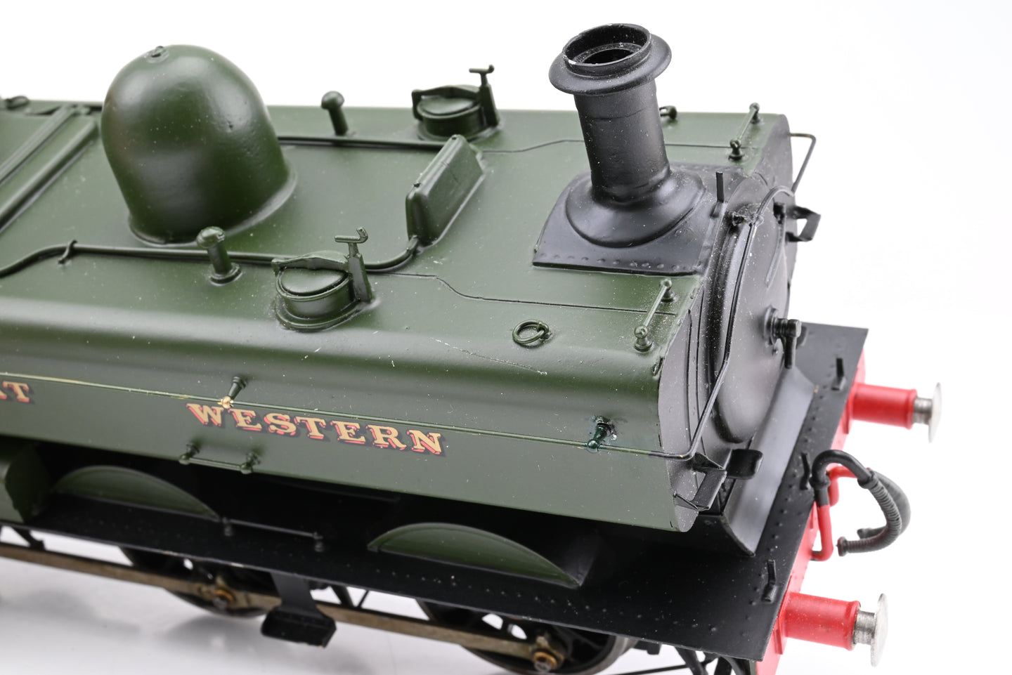 - Condition: Very good overall build quality, with an all brass construction. However, it looks like there has previously been some damage to the front-right corner of the tank, with some scratches and repair to the handrail bracket (see close-up photos). However, the overall quality of the rest of the model is very good. Would benefit from a little tidying up and finessing. The model has no couplings.