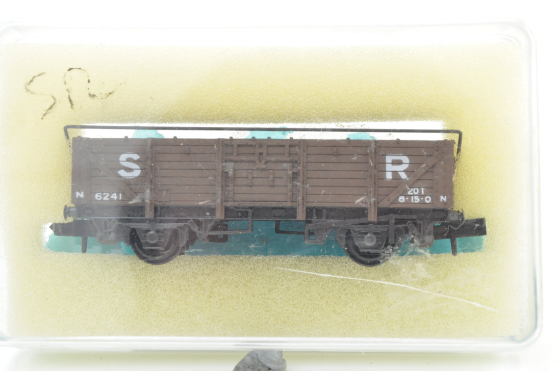 Peco/Graham Farish N Gauge Rake of 3 SR Open Wagons & Pill Box Brake Van - Boxed