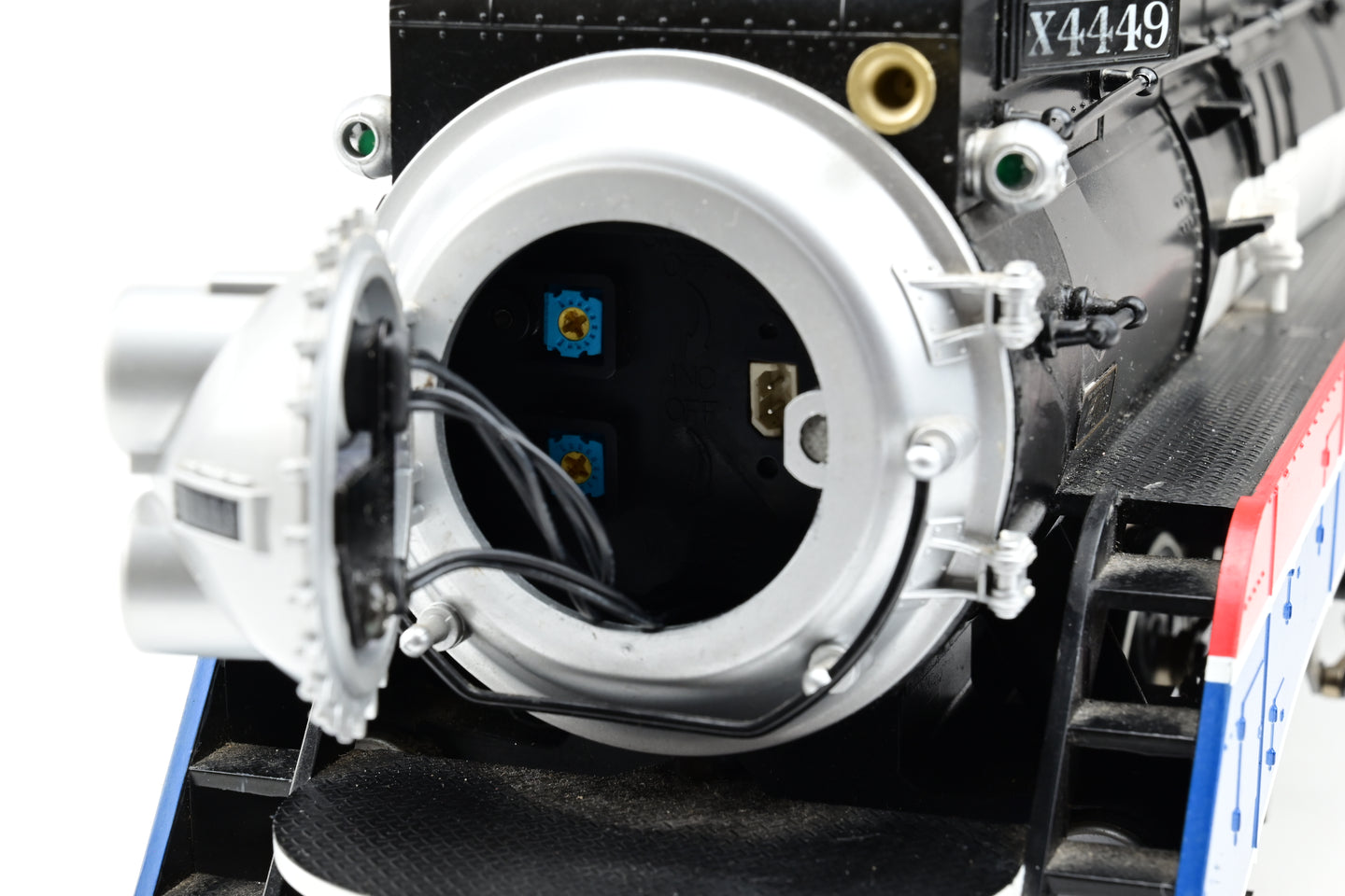 - The locomotive has a repaired crack on the left side of the boiler by the front door (see close-up photo).