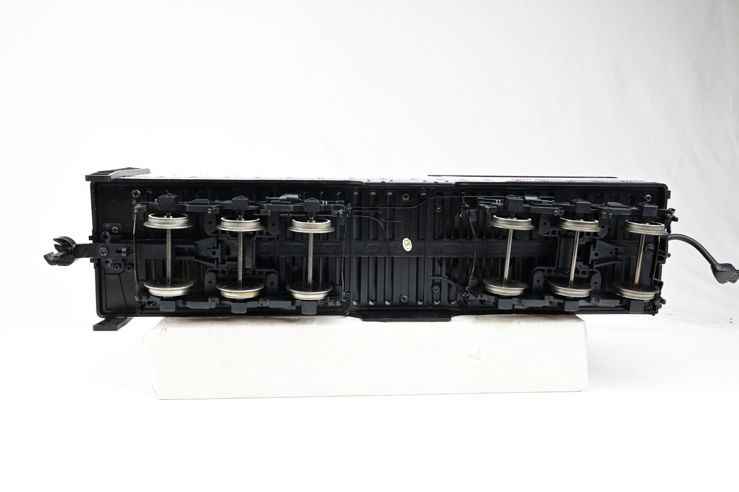 - The rear truck of the locomotive appears to be missing a retaining screw that holds it in place around the central spindle - however, once placed on the track with the rod through the hole, it runs perfectly well and doesn't move out of place; care is just required when lifting the engine.