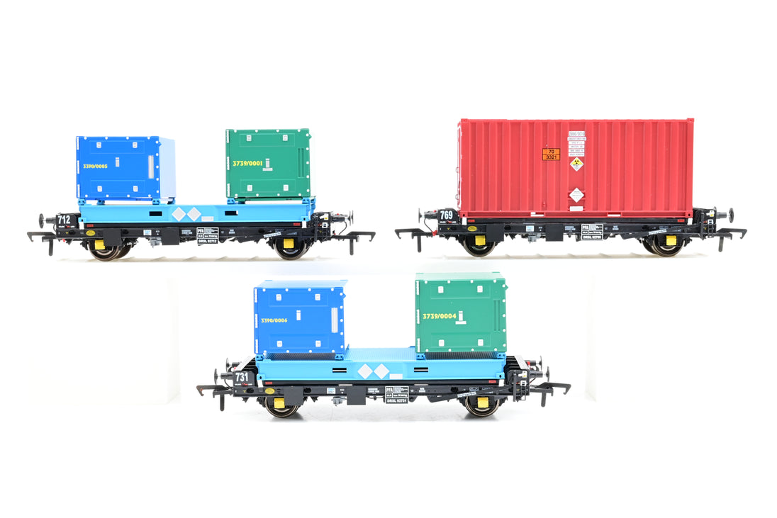 Accurascale OO Gauge ACC2095NUP DRS LLNW PFA Container Wagon Triple Pack (NUPAK Pack 3) No.92712, 92731 & 92769 - Boxed