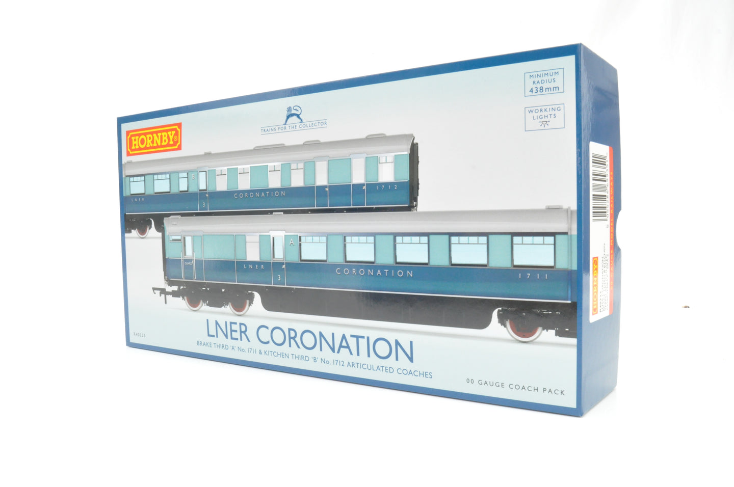 Hornby OO Gauge R40223 LNER Blue & Silver Coronation Brake Third & Kitchen Third Articulated Coach Pack - Boxed