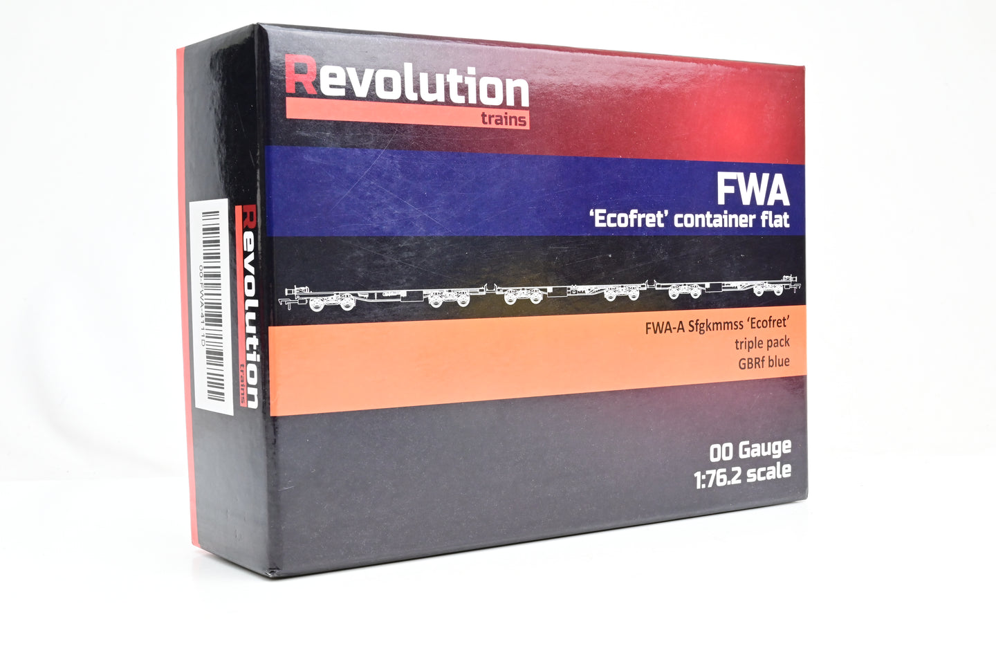 Revolution Trains OO Gauge 00-FWA-4111D GBRf Blue FWA-A Ecofret Container Flat Triple Pack No.837104520197-2, 034-6 & 196-4