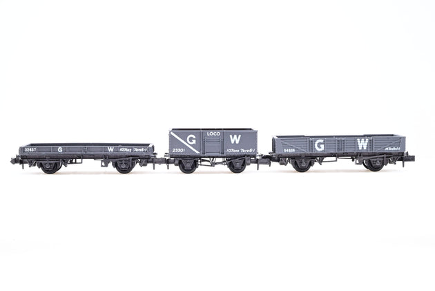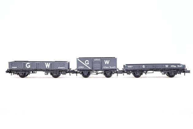 Peco N Gauge Bundle, 3 GWR Grey Open Wagons 'No. 32637, 94856, 23301' - Boxed