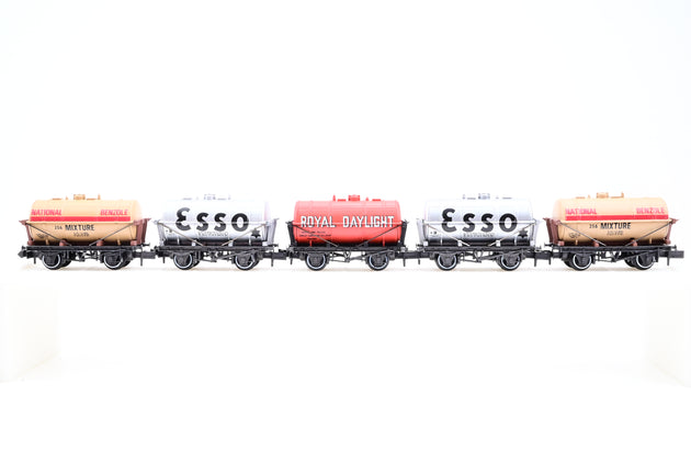 Peco N Gauge Bundle, 5 Tank Wagons 'Esso, National Benzole, Royal Daylight' - Boxed