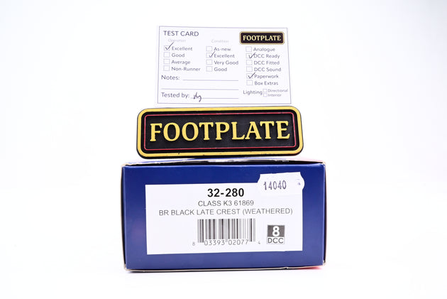 Bachmann OO Gauge 32-280 Class K3 61869 BR Black Late Crest, Weathered No.61869 - Boxed