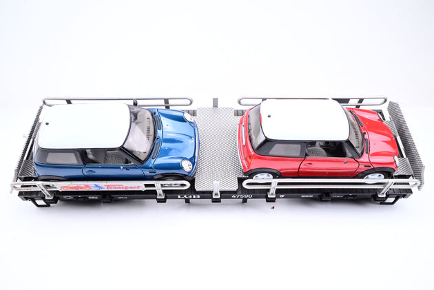 LGB G Gauge 47590 Auto Carrier Transporter Car w/ Diecast Mini Cars - Boxed
