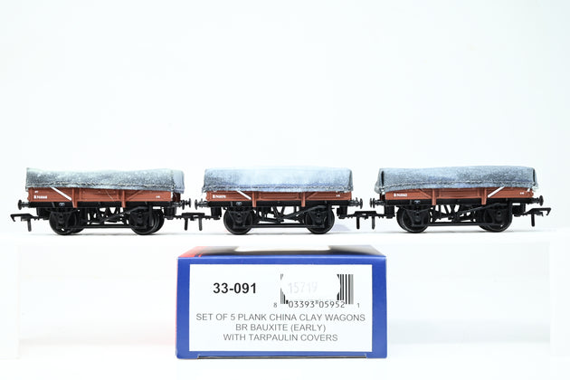 Bachmann OO Gauge 33-091 Set of 3 5 Plank China Clay Wagons BR Bauxite (Early) w/ Tarpaulin Covers No.B743068, B743062, B743070 - Boxed