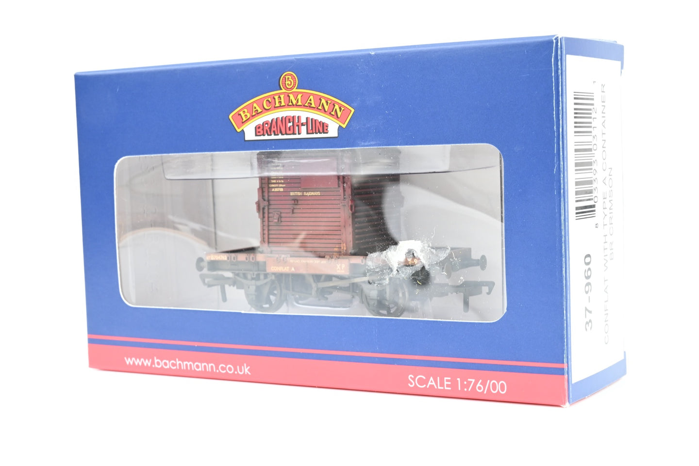 Bachmann OO Gauge 37-960 BR Crimson Conflat with Container B704762 - Weathered