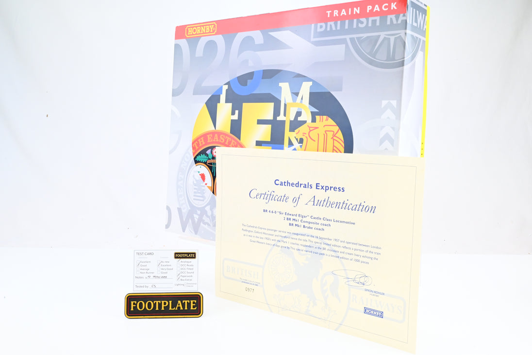 Hornby OO Gauge R2432 'Cathedrals Express' Train Pack w/ Castle Class No.7000 'Sir Edward Elgar' & 3 Mk1 Coaches - Boxed