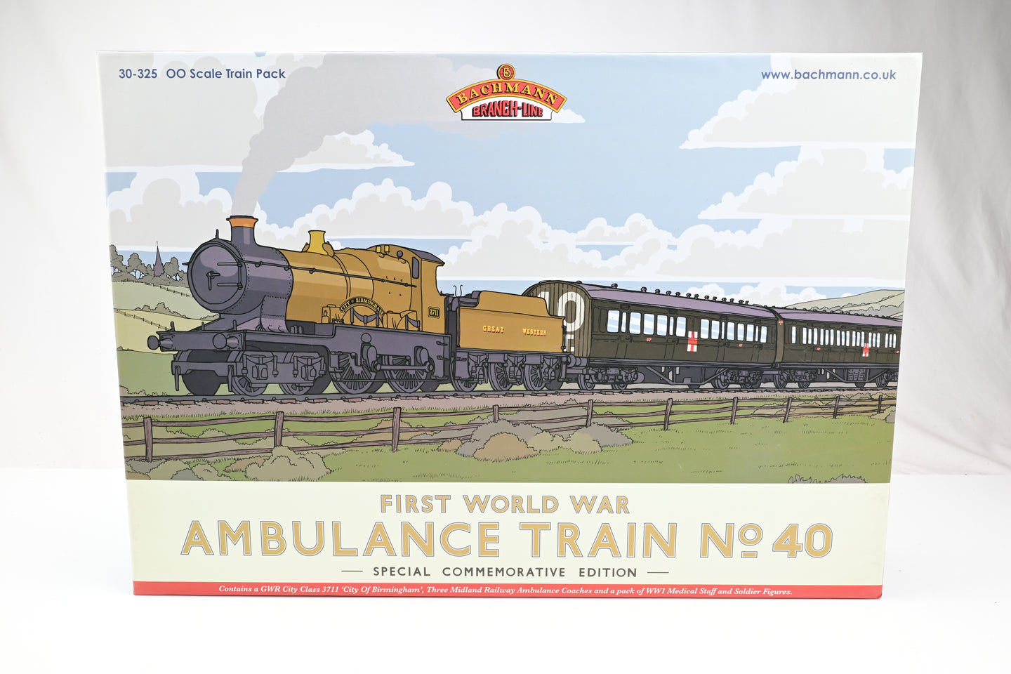 - Condition: Special commemorative edition boxed set. Contents: WWI Khaki City Class No.3711 'City of Birmingham', 3x Olive Green Midland Railway Ambulance Coaches, Pack of 6 Medical Staff and Soldier Figures.