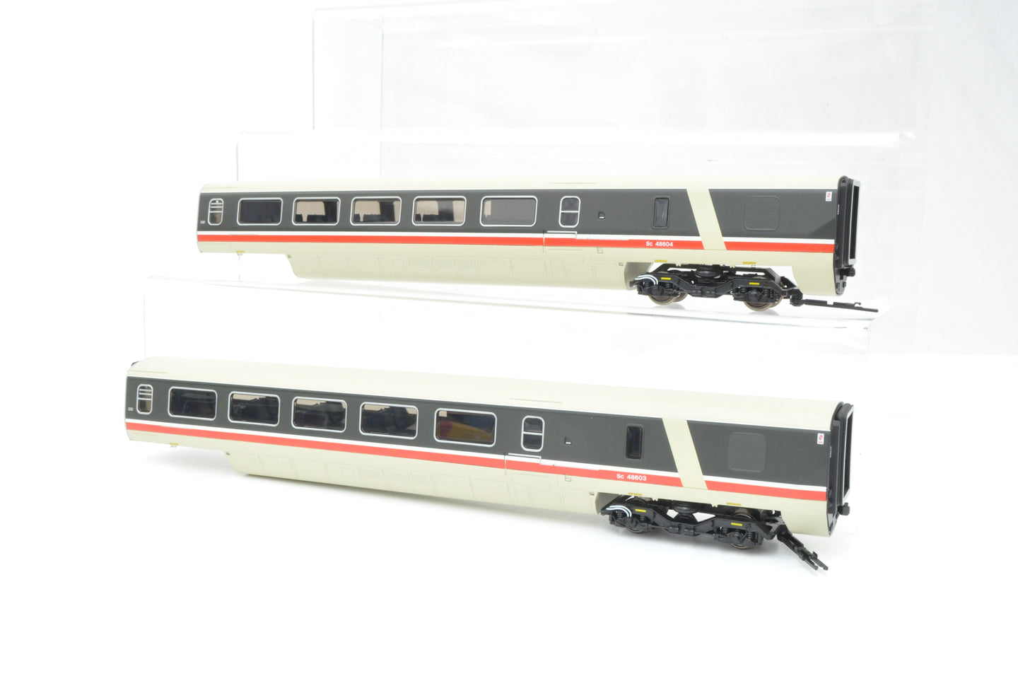 - Condition: Excellent condition, appears hardly used. This earlier version of the model has the original push-fit type of coupling (not the later magnetic couplings used on more recent releases). Includes additional couplings (in case of breakages or if you need to switch magnetic couplings on coach packs to push-fit to be compatible with this set) and original instructions.