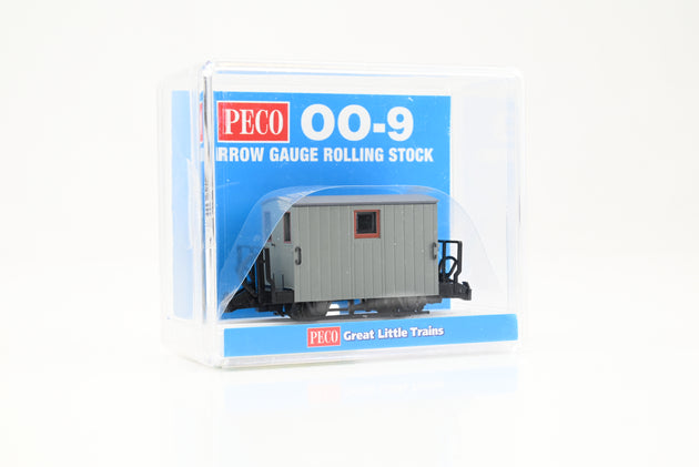 Peco OO9 Narrow Gauge GR-580UY Ffestiniog Railway Grey 4-Wheel 2-Balcony Brake Van Unlettered - Boxed