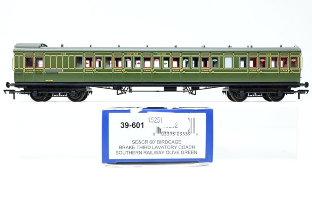 Bachmann OO Gauge 39-601 SE&CR 60' Birdcage Coach Brake 3rd Lavatory SR Olive Green