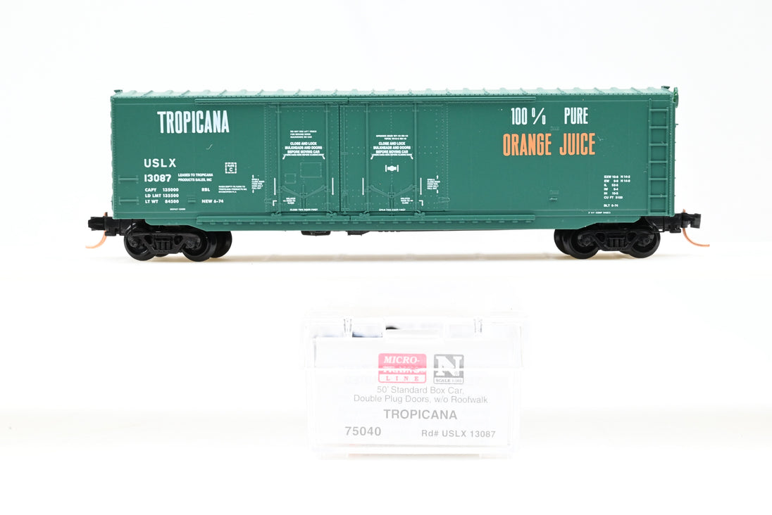 Micro Trains N Gauge 75040 Tropicana 50' Standard Box Car w/ Double Plug Doors & Roofwalk #13087 - Boxed
