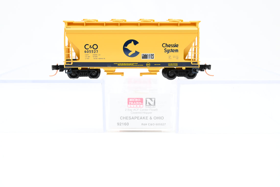 • Micro Trains N Gauge 92160 Chesapeake & Ohio 2-Bay ACF Center Flow Covered Hopper Car #605527