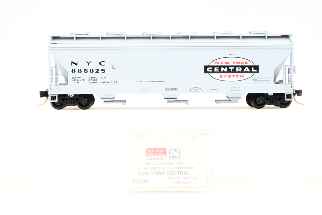 Micro Trains N Gauge 93030 New York Central 3-Bay ACF Center Flow Covered Hopper w/ Round Hatches #886025 - Boxed