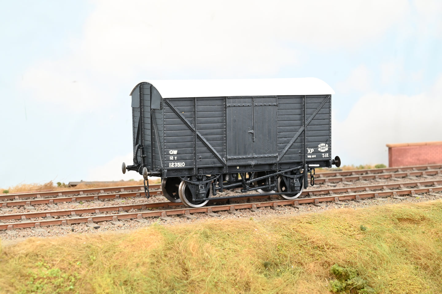Kit Built 7mm O Gauge PS26 GWR Dark Grey 12T Covered Goods Van No.123510