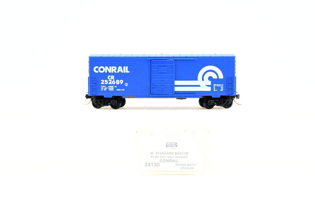 Micro Trains N Gauge 24130 Conrail 40' Standard Boxcar Single Door w/out Roofwalk #252689 - Boxed, Magne-Matic Coupler