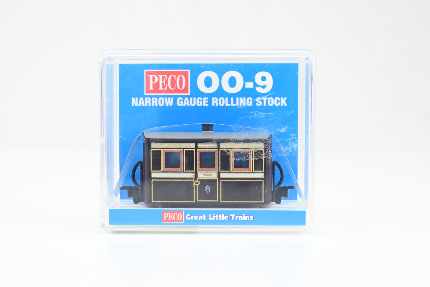 • Peco OO9 Narrow Gauge GR-555 Ffestiniog Railway Victorian Plum & Cream 3rd Class Bug Box Coach - Boxed