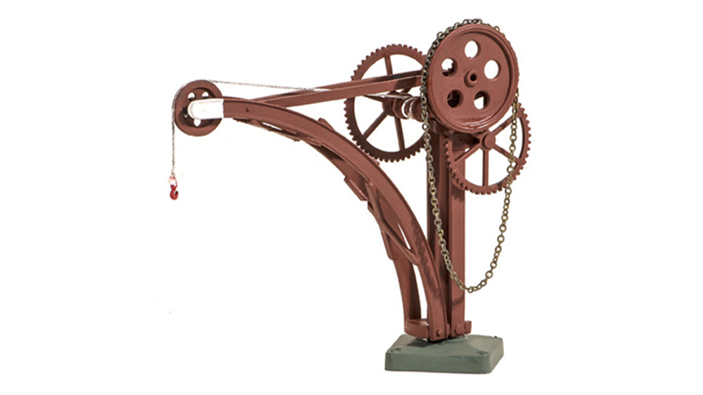 Used for loading goods onto wagons, these cranes were to be found by bay platforms in small stations with no goods sheds or in the yard of larger stations. The kit includes fine chain for the operating drive wheels and cord for the jib. Supplied with pre-coloured parts although painting and/or weathering can add realism (See the Pecoscene Weathering Powder range PS-360 - 365); glue is required to complete this model.