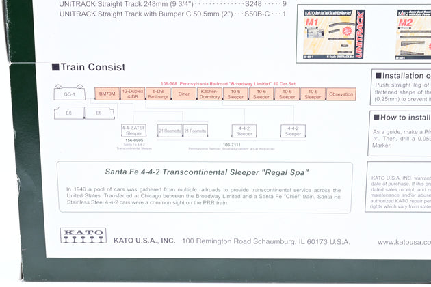 Kato N Gauge 106-068 Pennsylvania Railroad Broadway Limited 10 Car Set - Boxed