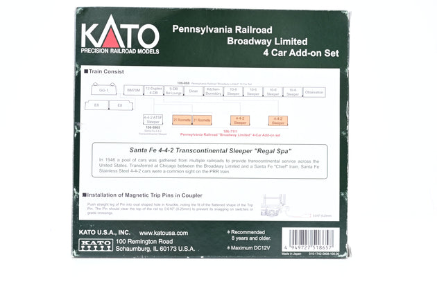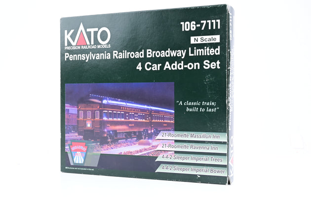 Kato N Gauge 106-7111 Pennsylvania Railroad Broadway Limited 4-Car Add-on Set - Boxed