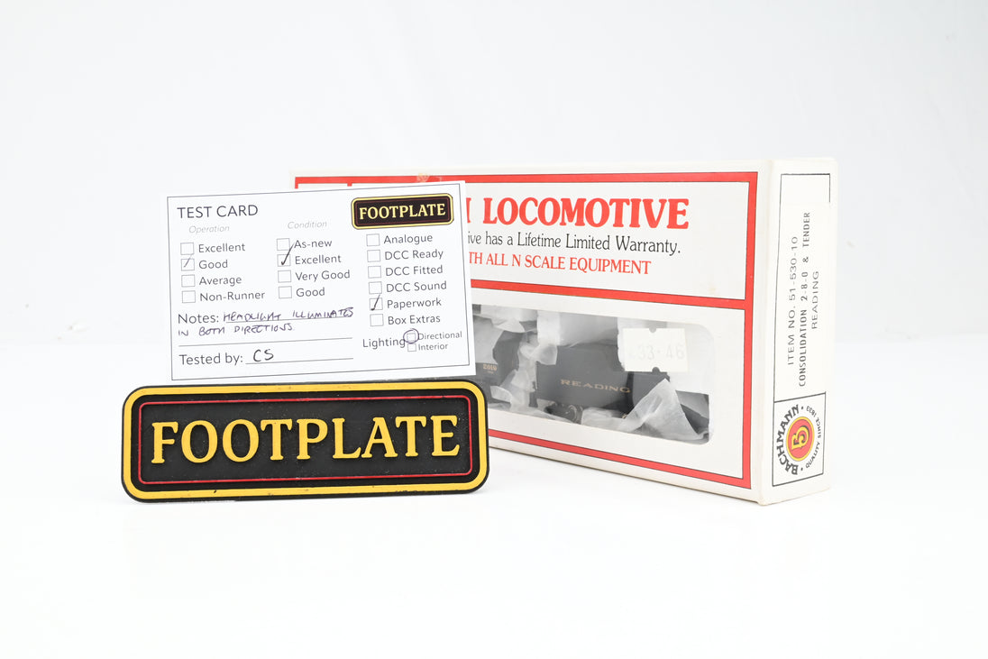 Bachmann N Gauge 51-530-10 Reading 2-8-0 Steam Locomotive #2019 - Boxed