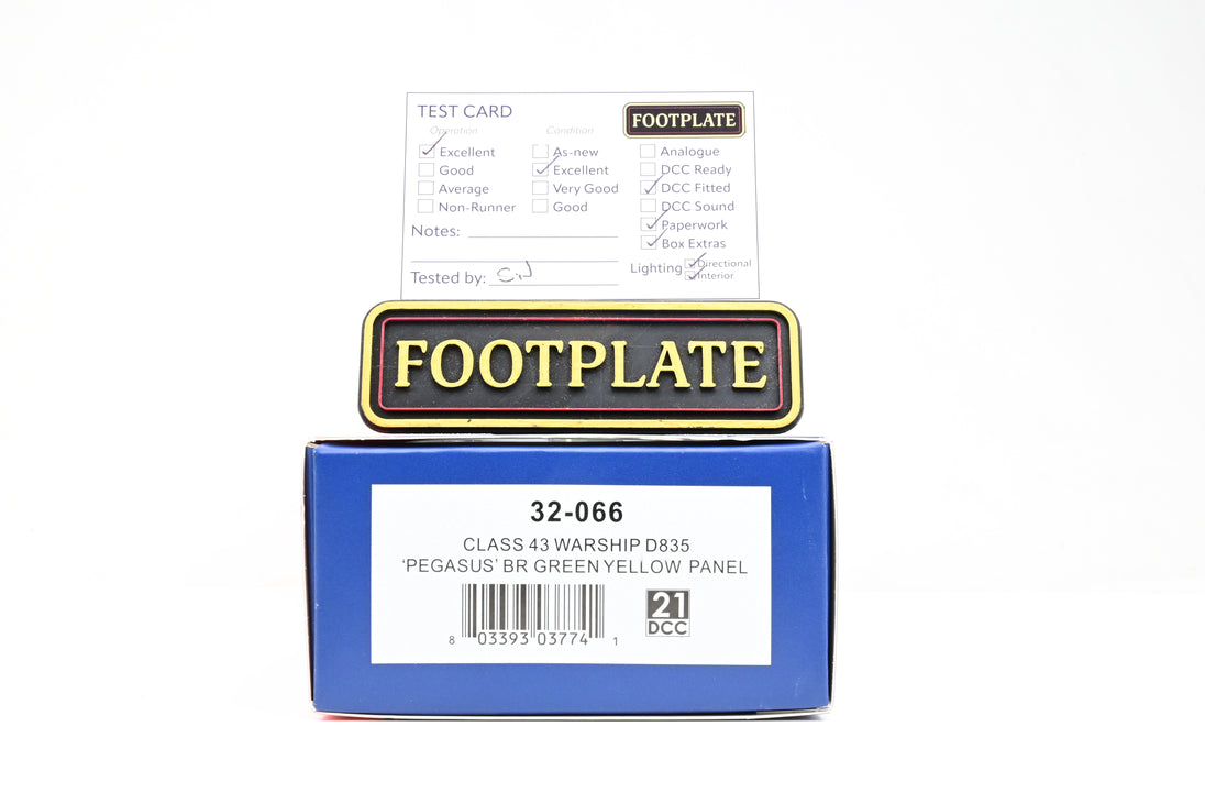 Bachmann OO Gauge 32-066 BR Green w/ Yellow Panel Class 43 Warship No.D835 'Pegasus' - DCC Fitted, Boxed