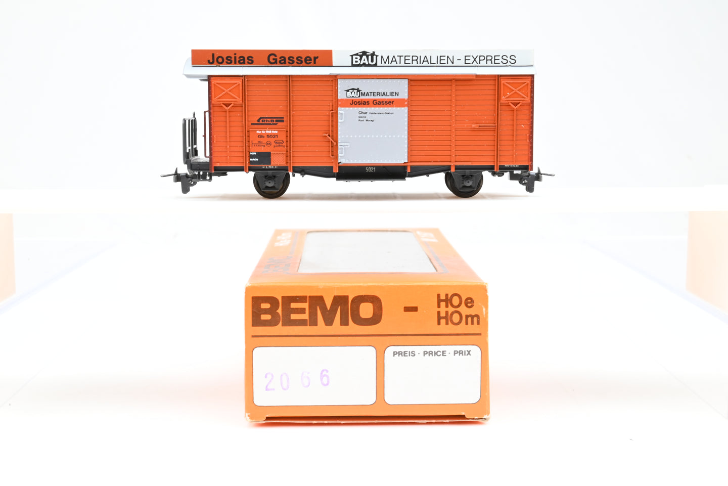 Bemo HOe Gauge 2066 RhB 4 Wheel Covered Wagon, Josias Gasser BAU Materialien -Express