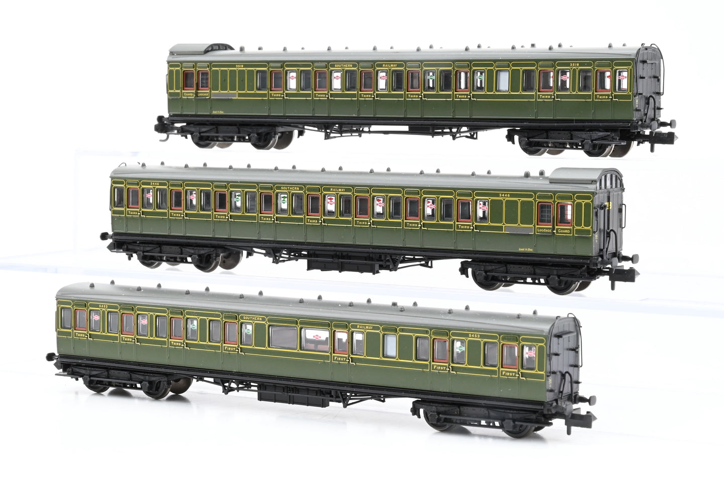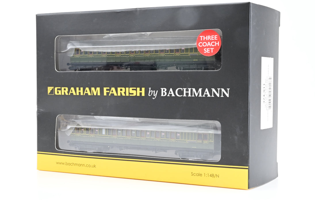 Graham Farish N Gauge 374-911 Triple Pack of SR Olive Green SE&CR 60ft Birdcage Coaches - Boxed