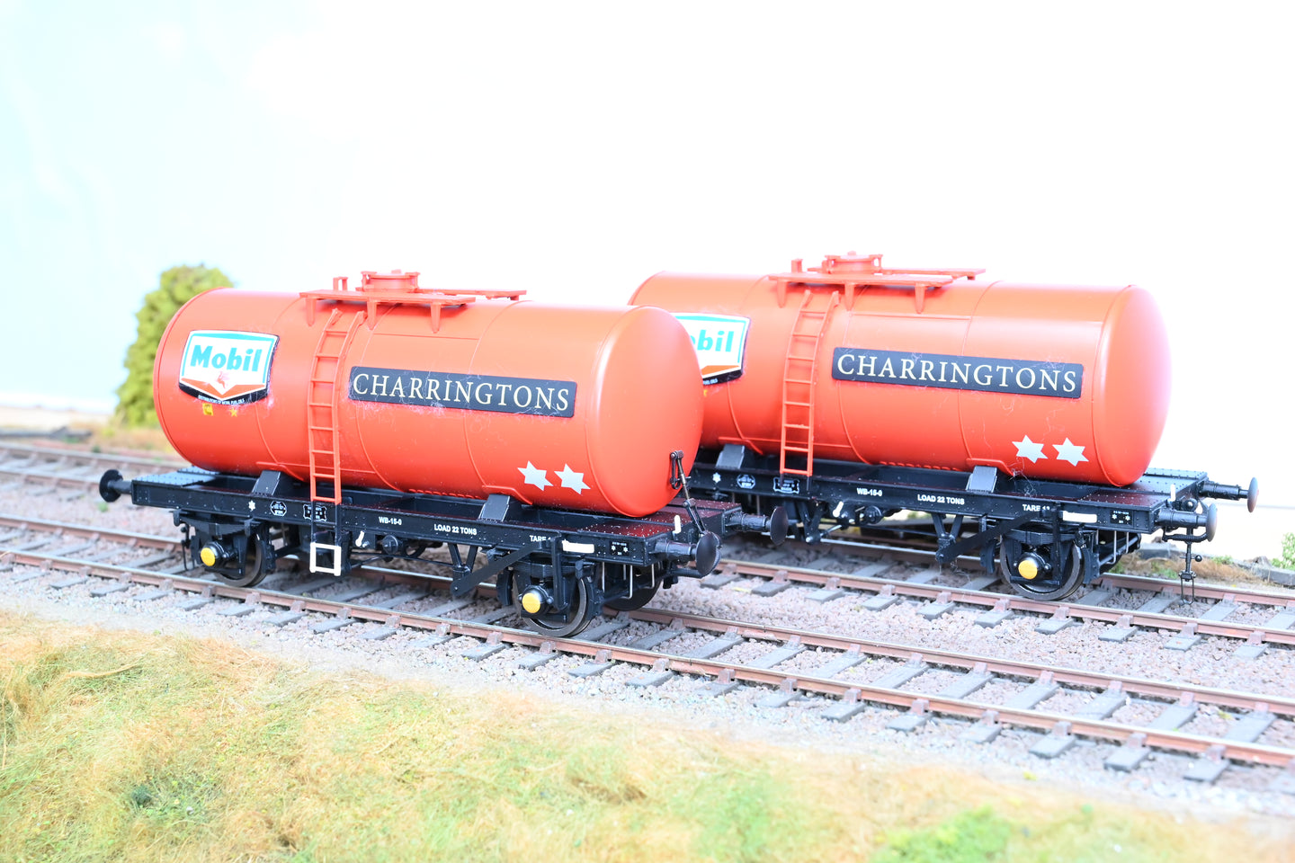Heljan 7mm O Gauge Pair of Mobil Charringtons Red 4-Wheel Class B Tank Wagons